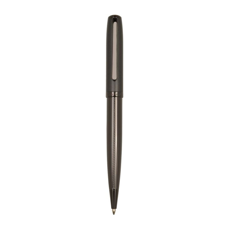 Pierre Cardin luxury metal ballpoint pen. The pen body features a structured gunmetal design and its upper part is in dark grey. The ballpoint pen has a rotating mechanism and contains a quality refill in blue with a 1 mm tip. It comes with a spare black refill. Packed in a gift box with a certificate of authenticity.