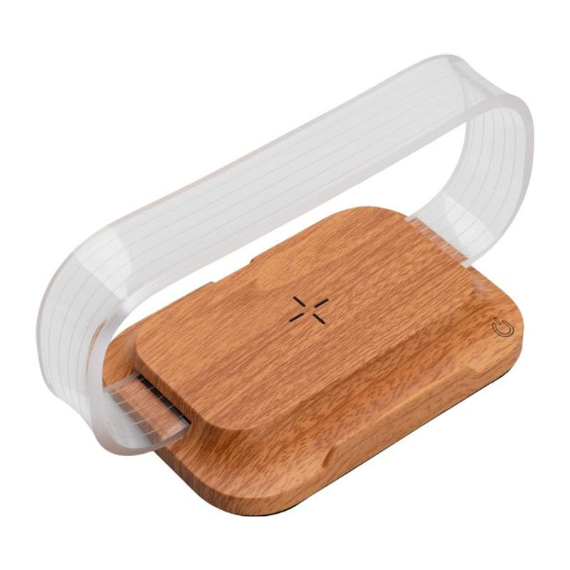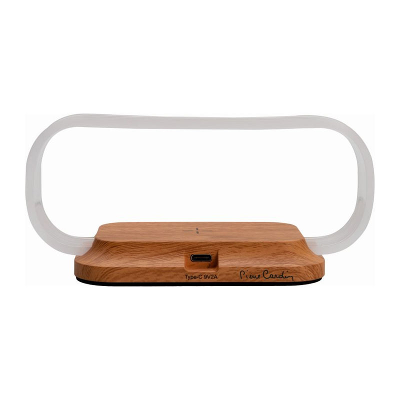 An elegant Pierre Cardin phone stand with 15W wireless charging function. The stand is made of wood imitation, which gives it a luxurious look. It includes a plastic frame with 3 shades of light. Input with USB Type-C 9V2A. Packed in a gift box with a certificate of authenticity.
