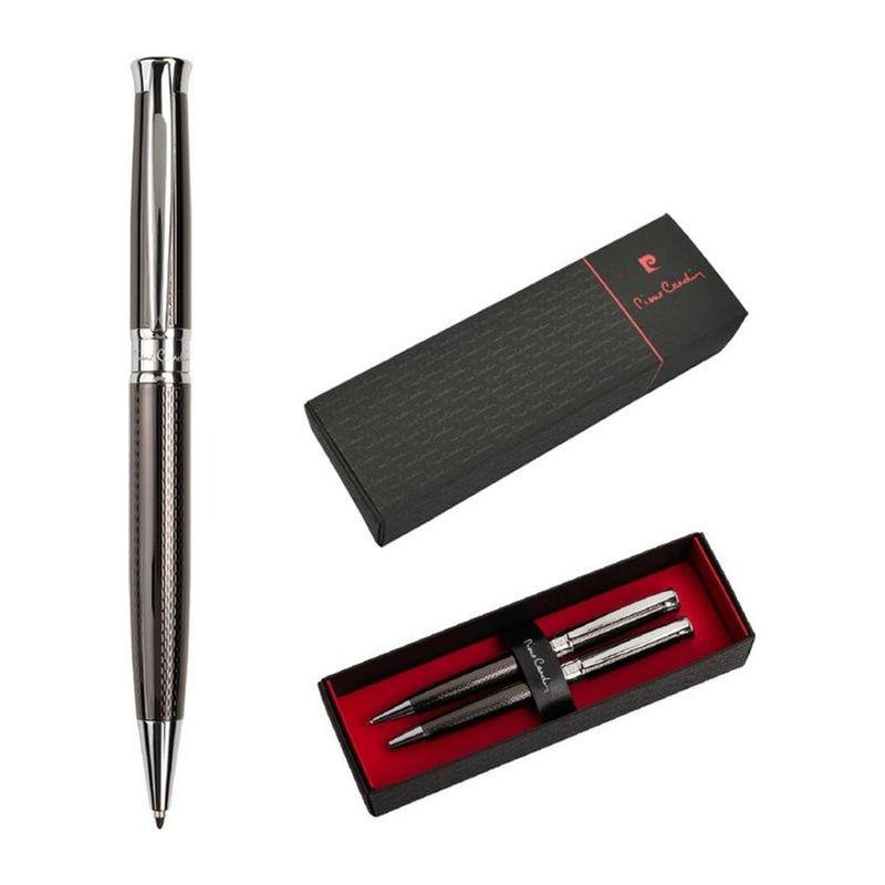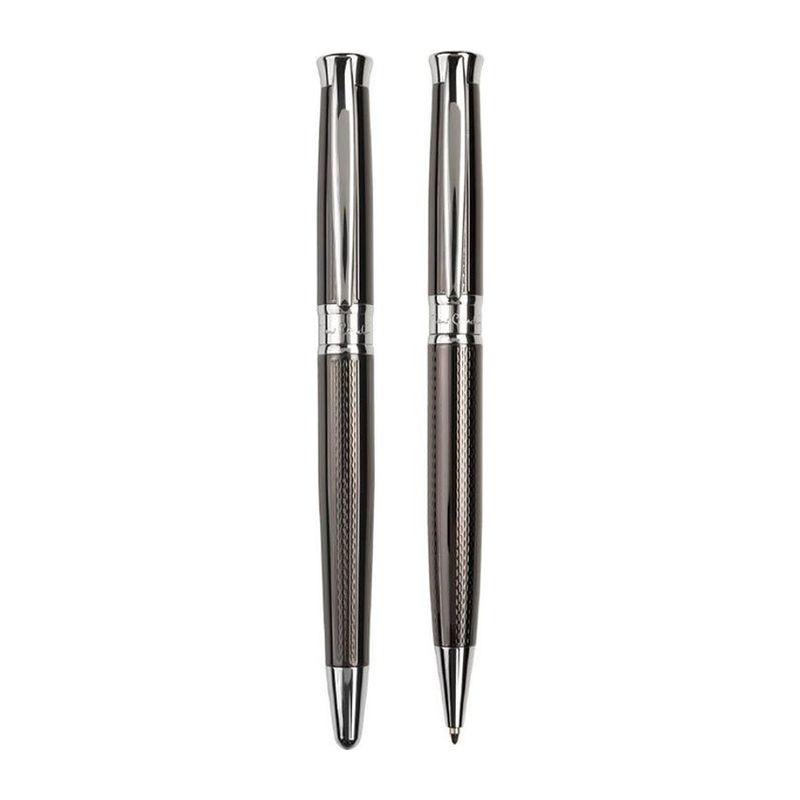 This elegant set of writing instruments Pierre Cardin includes a ball pen and a roller both of supreme quality and constitute thus excellent gifts. Pens have a very elegant shape and fine engraving over the entire surface. Ballpen has twist action me