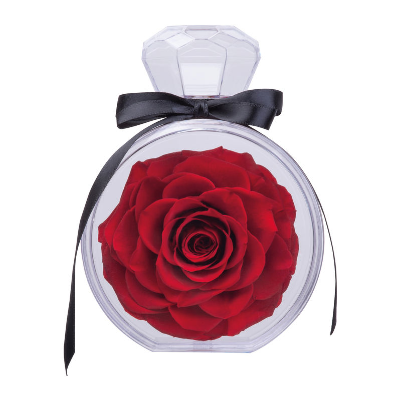 Real preserved rose in an elegant acrylic box with a ribbon and a refined crystal-look finish. The rose retains its natural beauty for several years, a stylish and long-lasting gift.