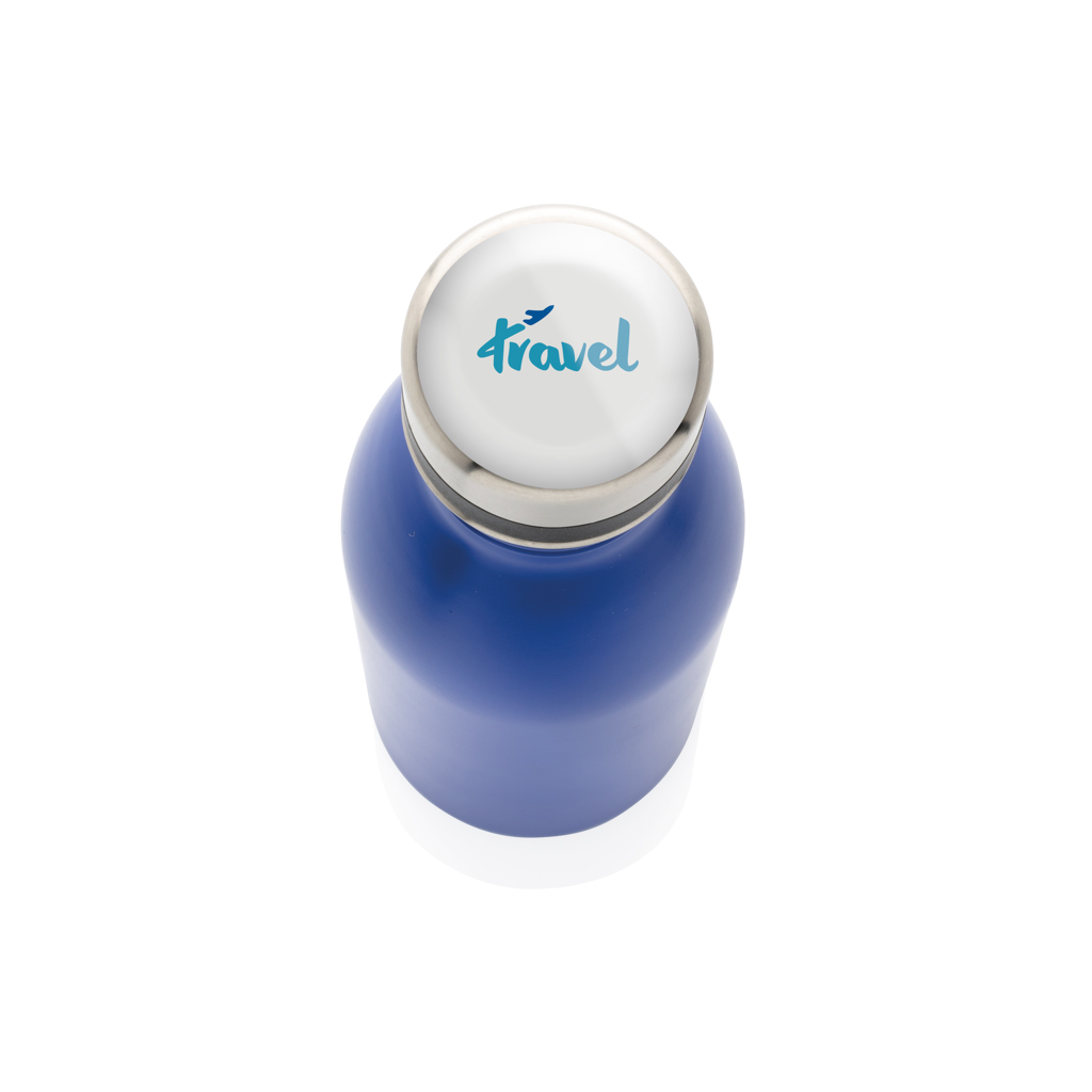 This perfect size and lightweight reusable bottle is made from 18/8 durable recycled stainless steel. Leakproof and perfect for everyday carrying and hydration. Recommended for cold water only. Made with RCS (Recycled Claim Standard) certified recycled materials. RCS certification ensures a completely certified supply chain of the recycled materials. Total recycled content: 80% based on total item weight. BPA free. Capacity 500ml. Including FSC®-certified kraft packaging.