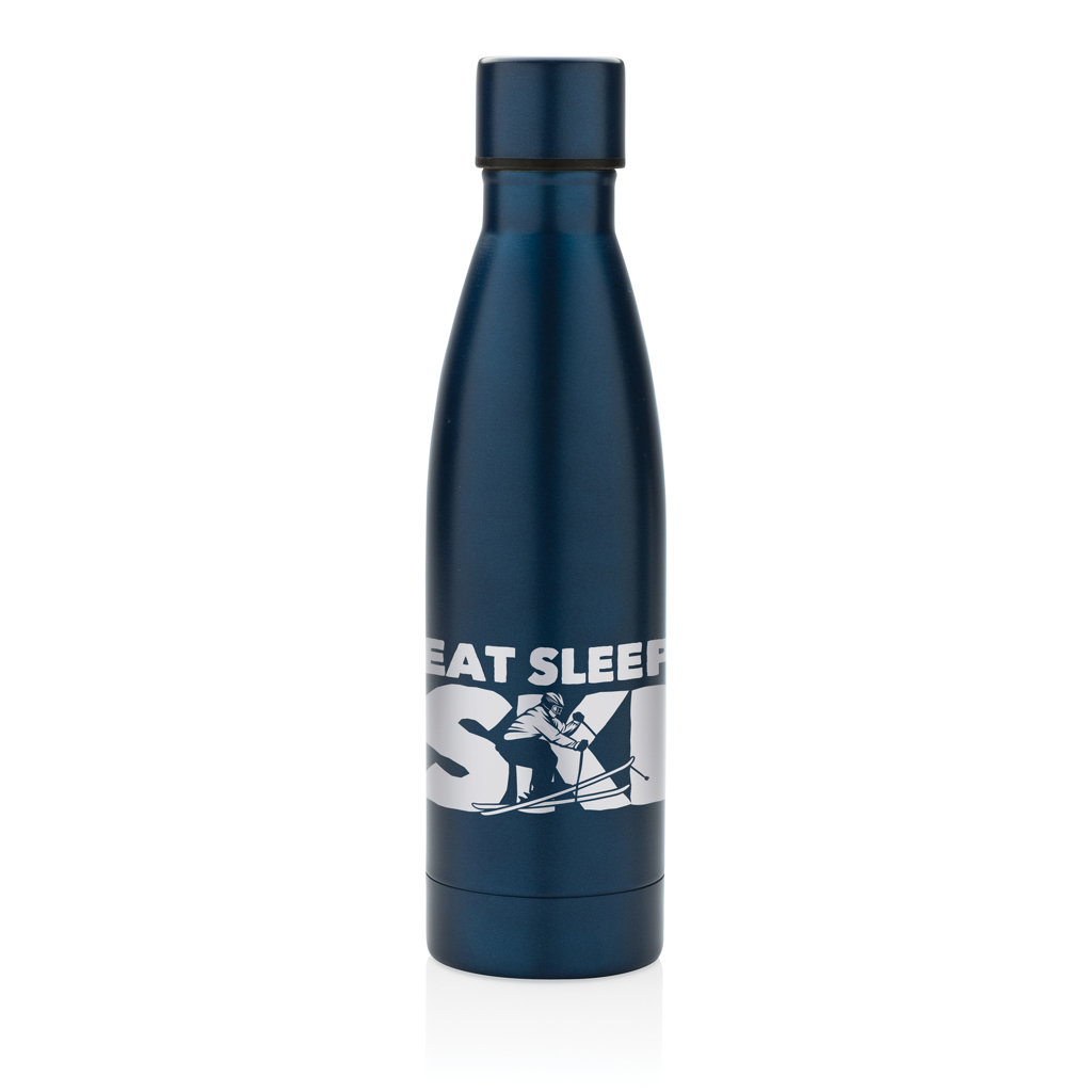This RCS Recycled stainless steel vacuum bottle is designed for long-lasting enjoyment of your drinks! The double-wall recycled stainless steel vacuum construction keeps beverages chilled for up to15 hours or warm for up to 5 hours. This bottle fits most standard car cup holders so you can bring it with you anywhere. Made with RCS (Recycled Claim Standard) certified recycled materials. RCS certification ensures a completely certified supply chain of the recycled materials. Total recycled content: 93% based on total item weight. BPA free. Capacity 500ml. Including FSC®-certified kraft packaging.