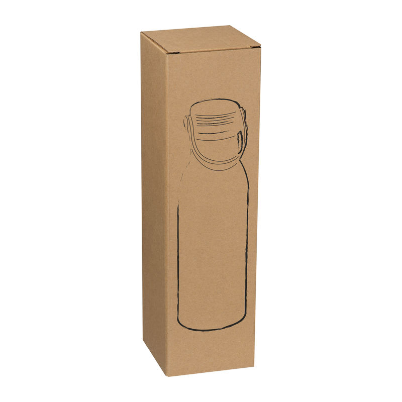 Drinking bottle with 750ml capacity made of recycled aluminium and practical silicone loop. We will engrave your logo on the bottle.