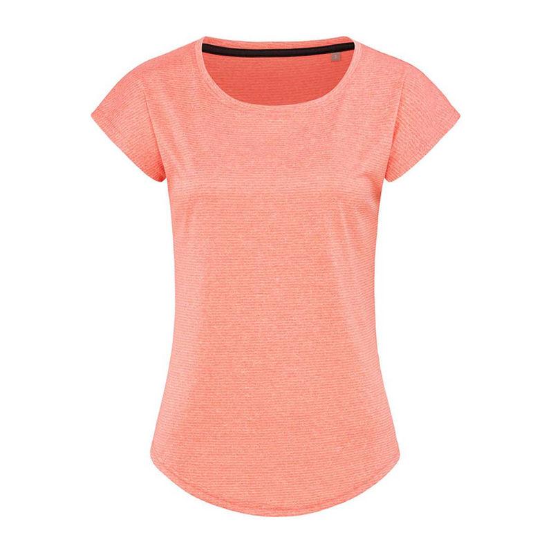 Eco-friendly from recycled material. Modern with a heathered look made from ca. 4 bottles. Especially flattering shape for ladies with overcut sleeves and a rounded hem.