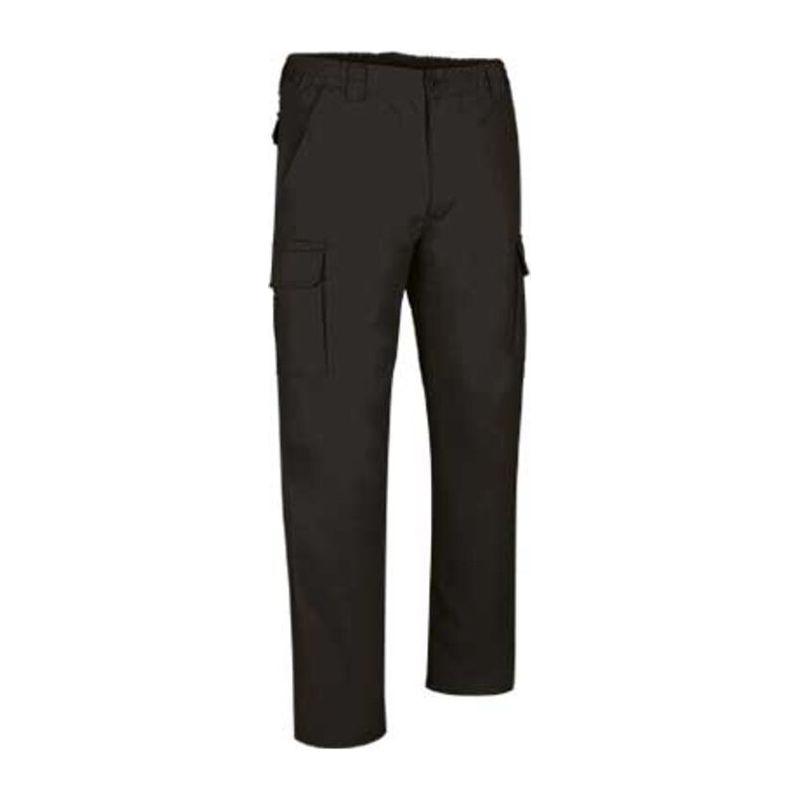 Trousers 65% polyester, 35% cotton. 240 grs/m² twill fabric. 1 cargo pocket on left leg. 1 cargo pocket + cutter knife pocket on right leg. 2 back flap pockets. 2 waist pockets. Elastic waist. Reinforced seams. 20 units per box: 1 size, 1 color. Individual bag.