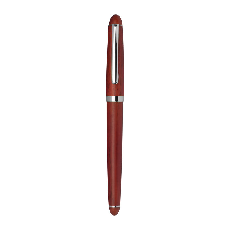 Wooden writing set consisting of a blue-writing ball pen with metal system refill and a fountain pen including a blue cartridge in a wooden box *with ball pen stand. We will print your logo on the box.