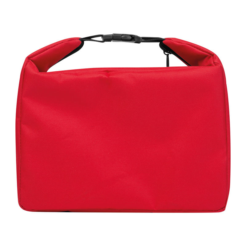 Cooler bag made from recycled polyester (RPET) with front zipper pocket, 5-liter capacity.