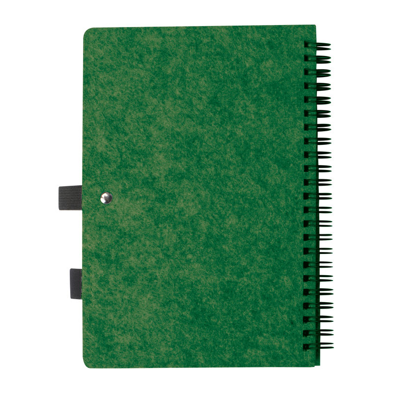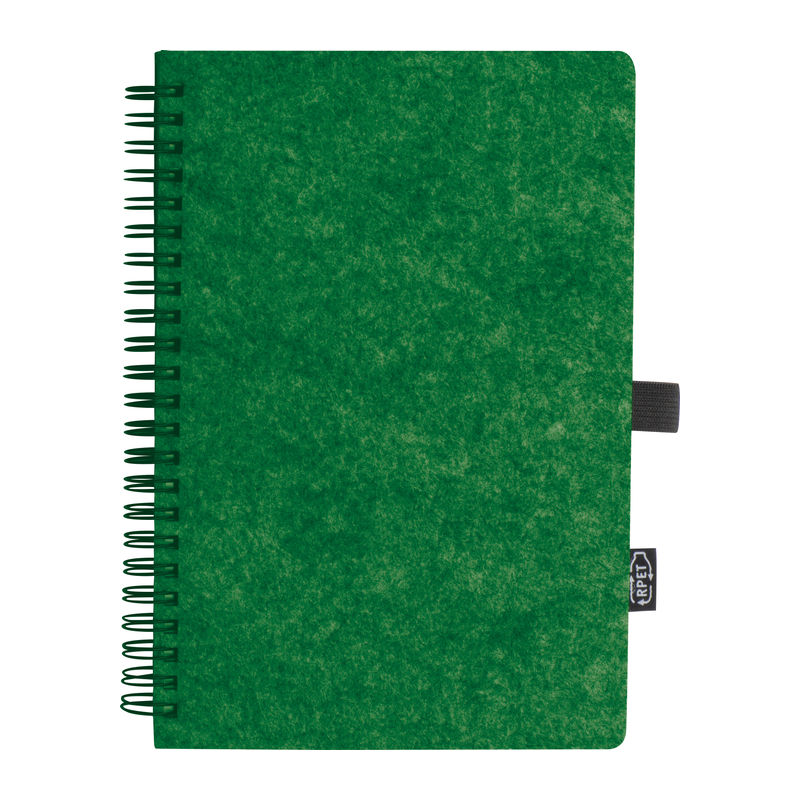 Notebook made of RPET felt and 160 lined pages of recycled paper with spiral binding and ballpen loop, with RPET label.