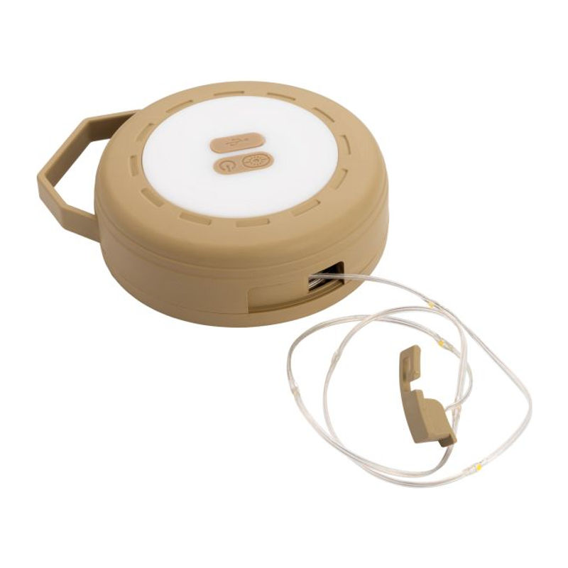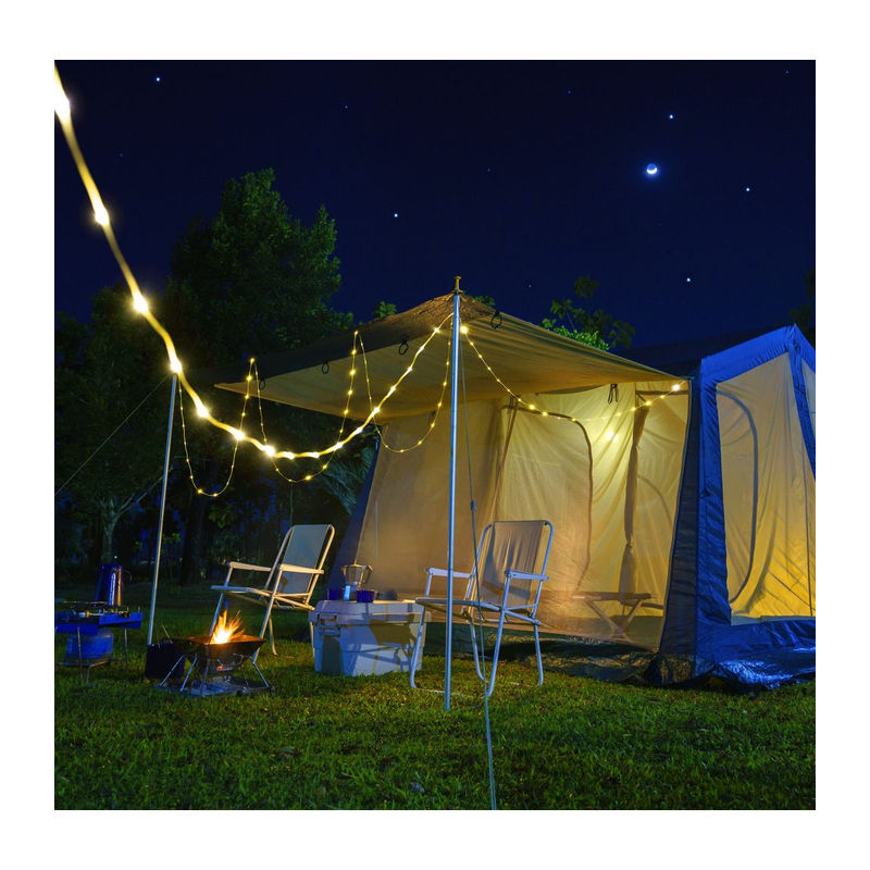 Schwarzwolf hanging camping light with 3 lighting modes: weak, strong and red flashing light. The light contains 24 white and 12 red LEDs. It has a built-in 10m light chain, which can be used to decorate a tent when camping and create a romantic atmosphere during your stay in nature. IPX4 waterproof. Packed in a gift box. Luminosity: 80–250 lumens.