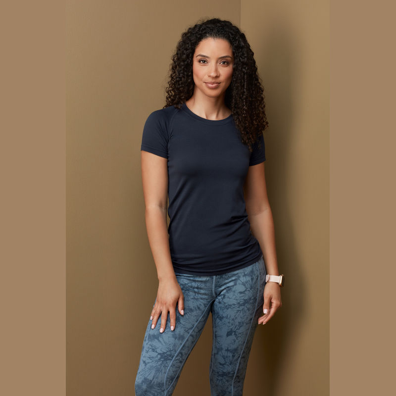 Seamless Sports-T for ultimate comfort without itchy side-seams, finished with tone-on-tone necktape, a woven size label in the neckline and a tear-away care label in the bottom hem