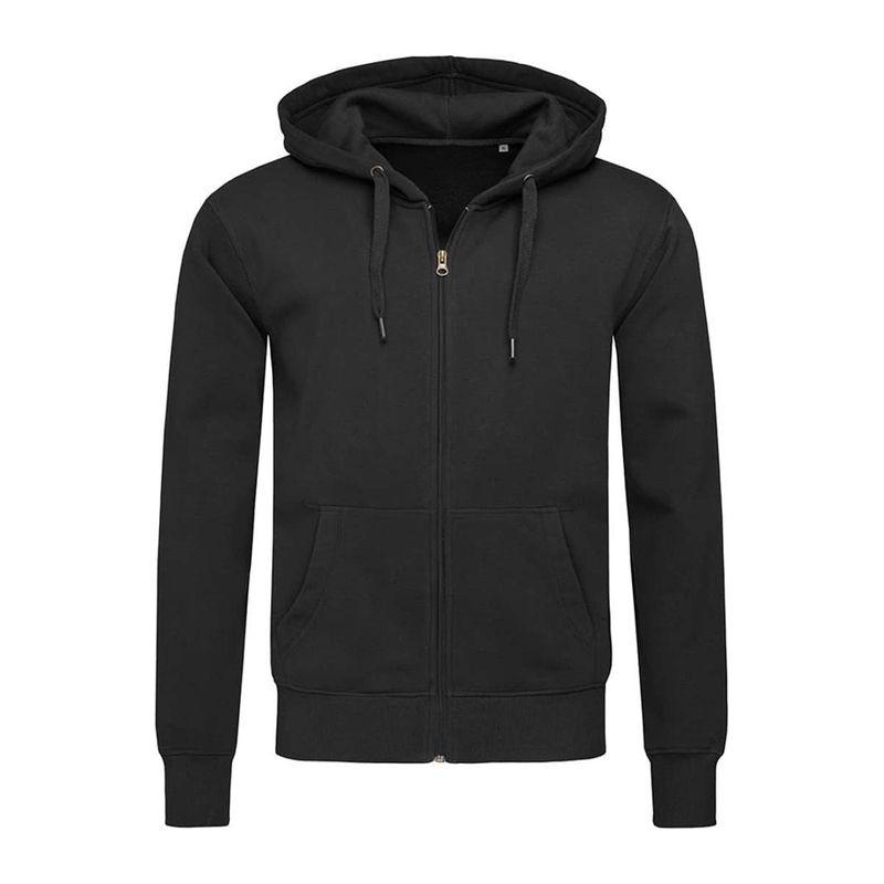 Fashionable hooded sweatjacket for men made of warm and soft cotton-polyester-blend with a modern and sporty design, kangaroo pocket, wide rib cuffs and wide draw cord. Brushed inside for extra comfort and warmth.