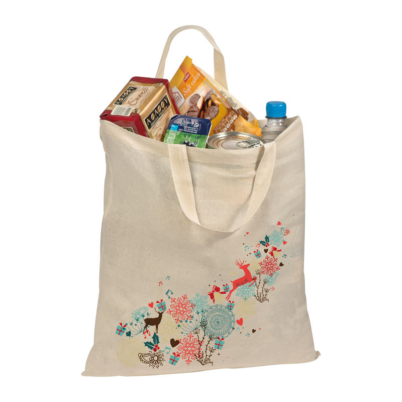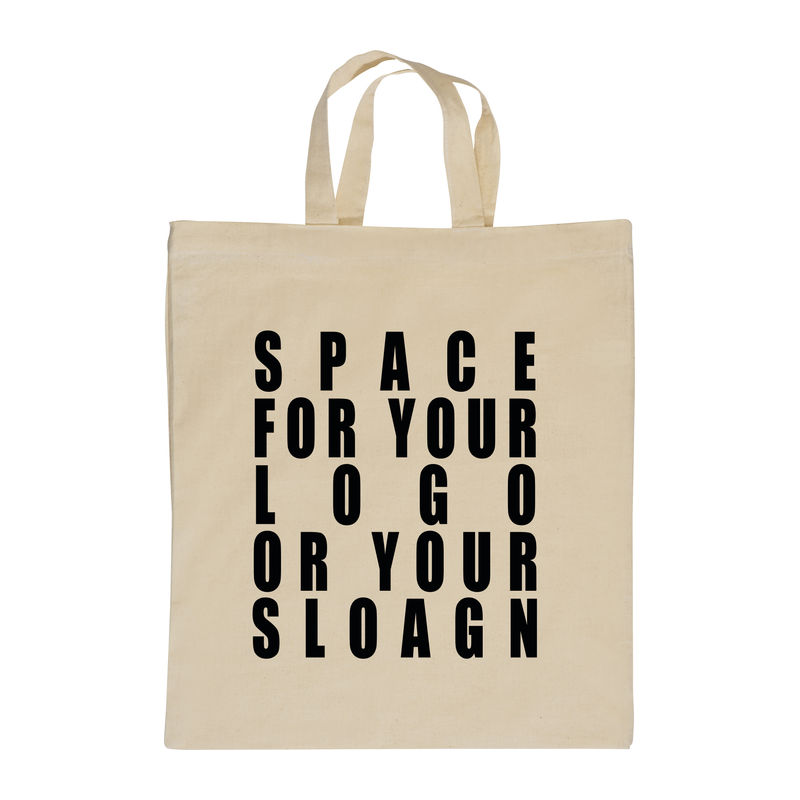 Natural-coloured cotton bag (140g/m²) with two short handles.We will print your logo on one side.