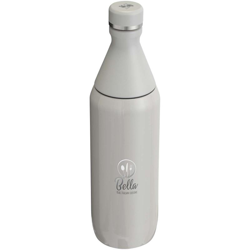 The Stanley 600 ml All Day Slim water bottle is designed for all-day hydration, combining convenience and performance. Made from 90% recycled stainless steel, it features a two-piece opening—one for easy sipping and the other for adding ice and hassle-free cleaning. The neck is crafted from single-wall stainless steel with a plastic threaded collar and a secure compressed seal to prevent leaks. The body has double-wall vacuum insulation, ensuring your drinks stay at the perfect temperature for hours. Durable and thoughtfully designed, it's the ideal bottle for staying refreshed wherever your day takes you.