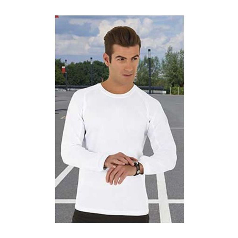 100% polyester. 145 grs/m2 breathable technical fabric. Round neck. Splitraglan long sleeve with cuffs. 50 units per box. 5 units per package: 1 size, 1 color.