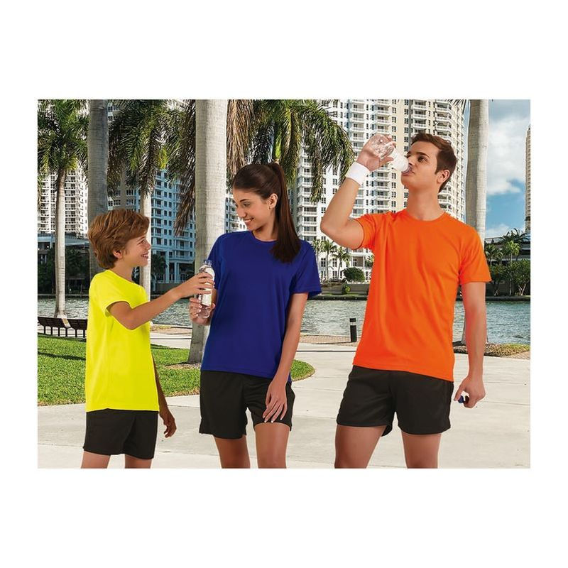 100% polyester sport t-shirt. 150 g/m² breathable technical fabric. Crew neck. Split short raglan sleeves. Double stitching on neck, bottom and sleeves. 100 units per box. 10 units per package: 1 size, 1 color.