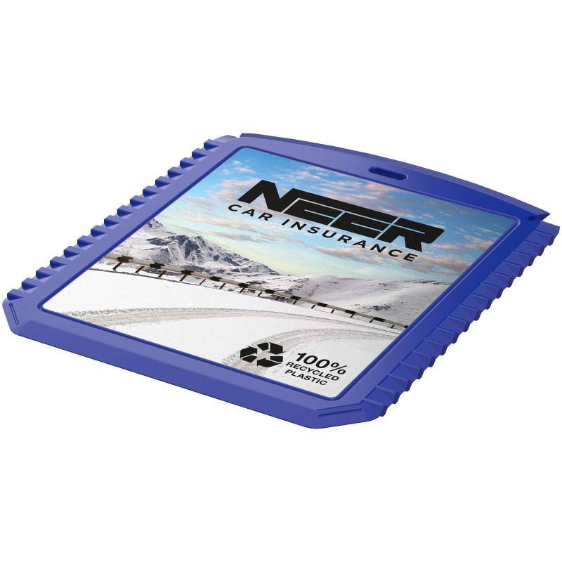 Compact and convenient, the Thrym rectangular recycled plastic ice scraper is the perfect tool for use in icy conditions. Made from 100% recycled plastic, its durable construction ensures effective removal of ice and frost. Features a flat edge, a serrated edge, and a windscreen wiper blade cleaner.