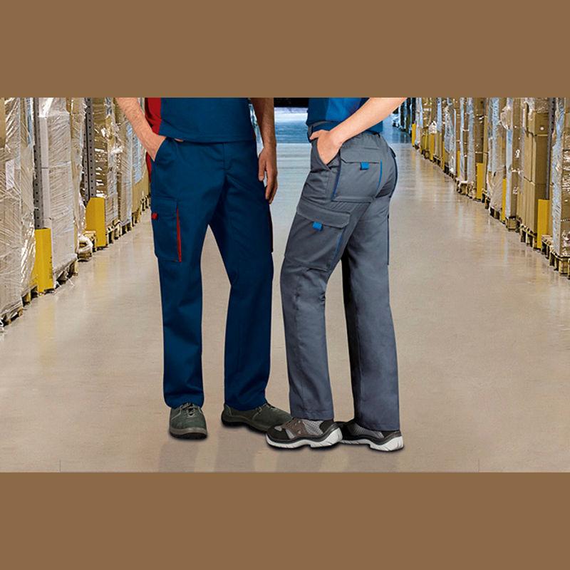 65% polyester, 35% cotton, 240 grs/m² twill fabric. Elastic waist in back . 2 waist pockets, 2 back flap pockets, 2 cargo lateral pockets. Button and zipper closure. Reinforced seams. Match with set Thunder (polo shirt, sweatshirt, vest). 20 units per box: 1 size, 1 color. Individual bag.