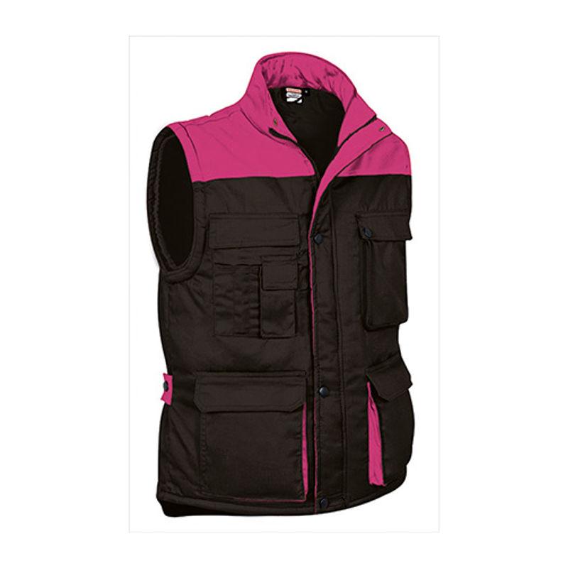 Outside fabric 65% polyester, 35% cotton, 200 grs/m² twill fabric. Padded 100% polyester 220 grs/m². Left breast zip pocket (easy embroidering/printing). High collar with total zip. Lateral regulators. Inside pocket. 2 pen departments. Right chest pocket for phone. Back wide area for printing. Back side longer. Inside zip (easy embroidering/printing). Arm hole inside cover. 20 units per box: 1 size, 1 color. Individual bag.
