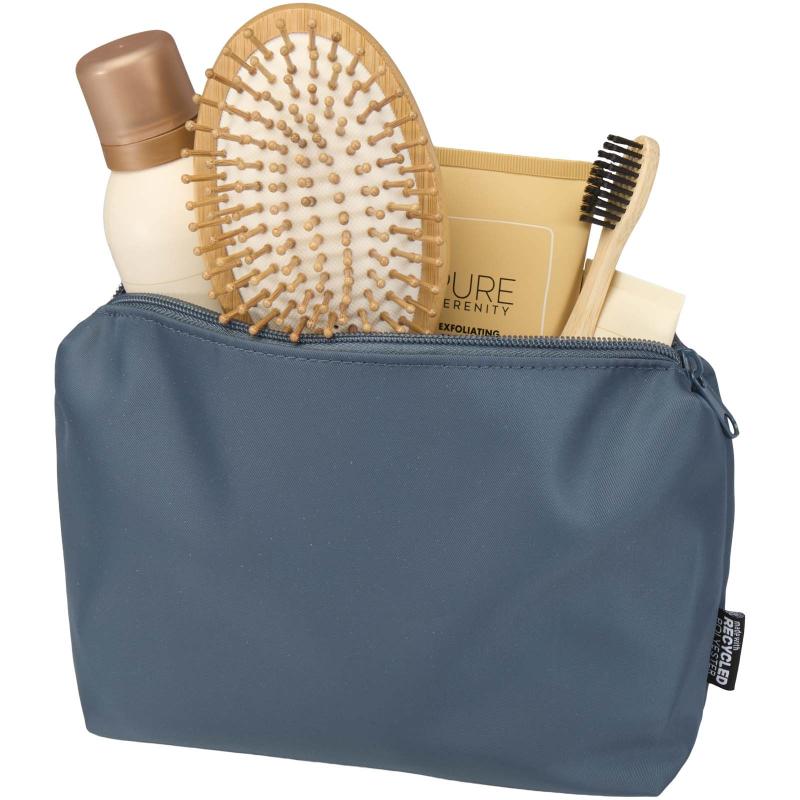 The Trip Aware™ recycled travel toiletry pouch is a compact and straightforward solution for carrying daily essentials. Made from 290D twill polyester with a knitted backing and lined with RPET 210D/PU, it features a clean, minimalist design. The main compartment offers space for toiletries or small items, making it ideal for short trips or on-the-go organisation. Each bag also comes with an Aware™ tracer. This innovative feature allows users to trace the origins and journey of their item through a QR code, enhancing transparency in the supply chain and fostering a stronger connection between the product and its production process. Volume capacity: 2 litres.