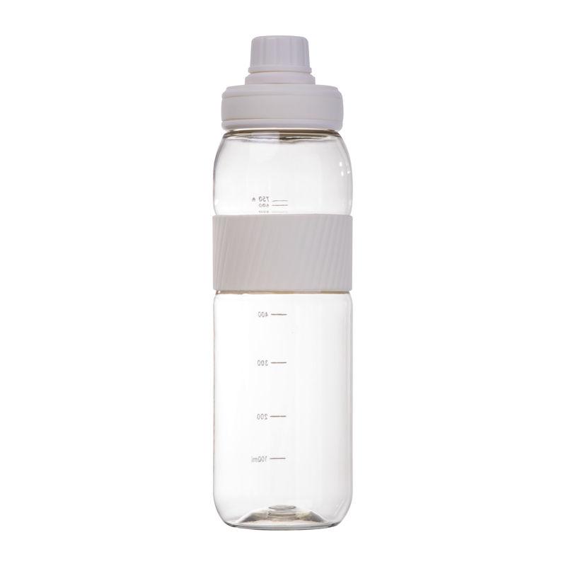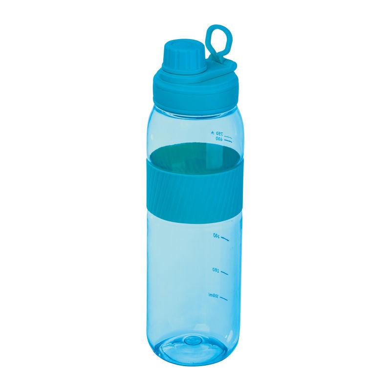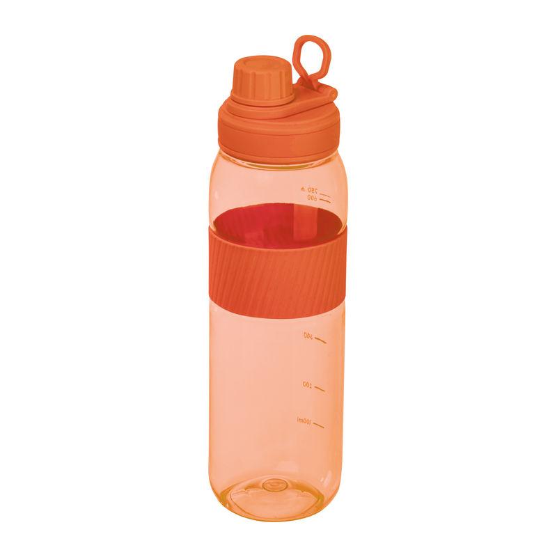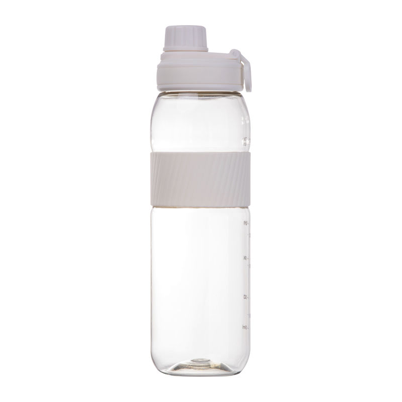 Tritan drinking bottle with screw cap, non-slip silicone grip zone, and 750ml capacity.