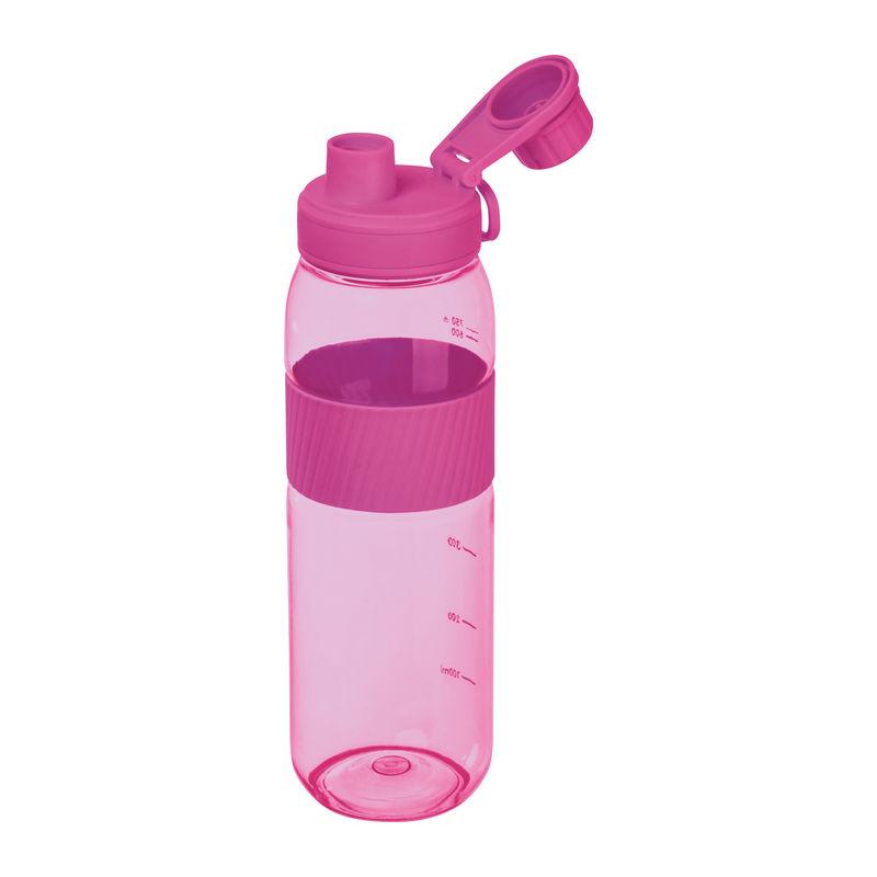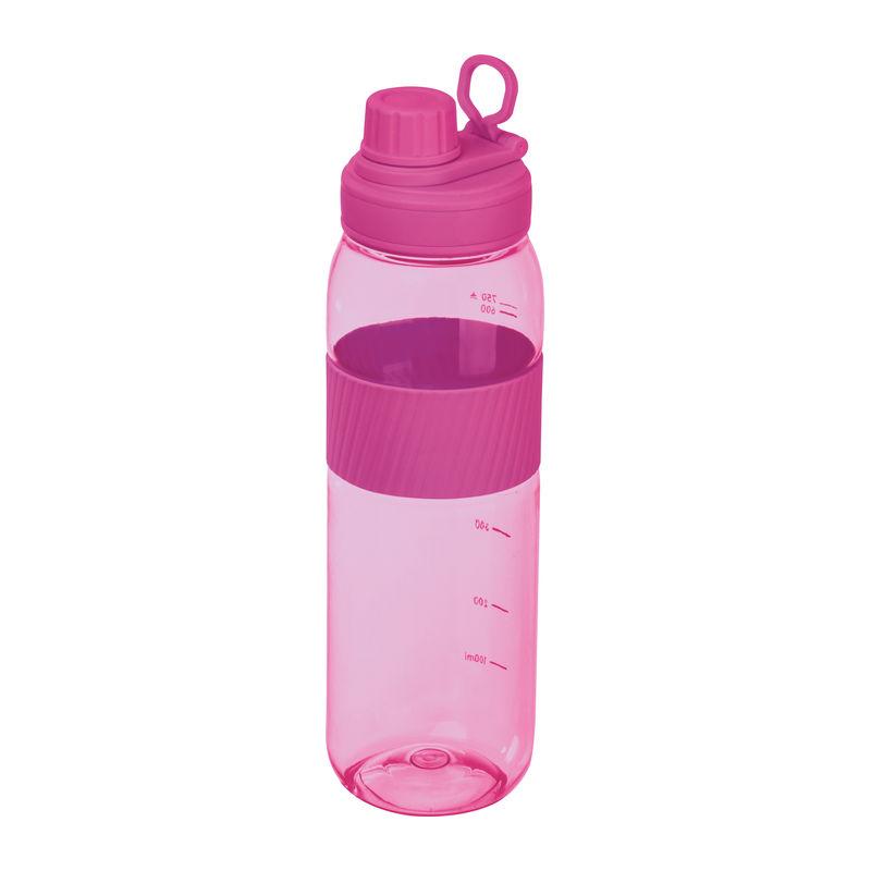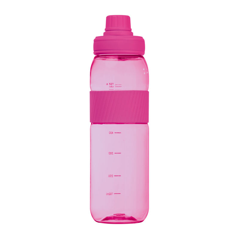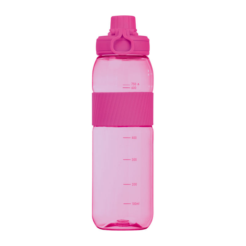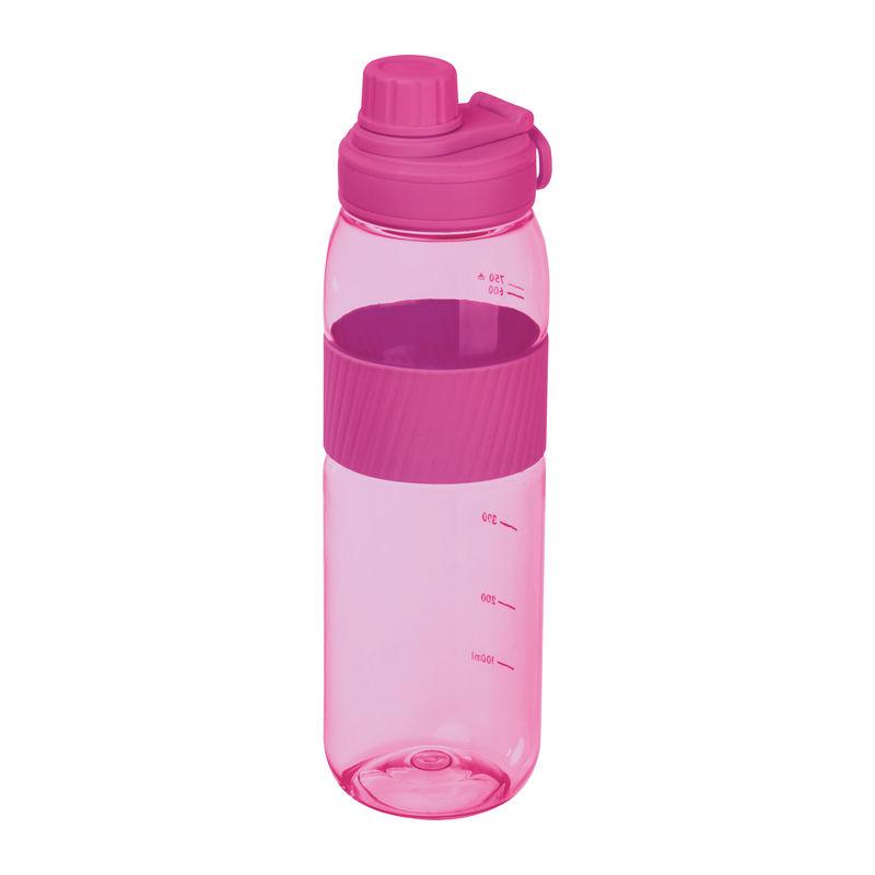 Tritan drinking bottle with screw cap, non-slip silicone grip zone, and 750ml capacity.