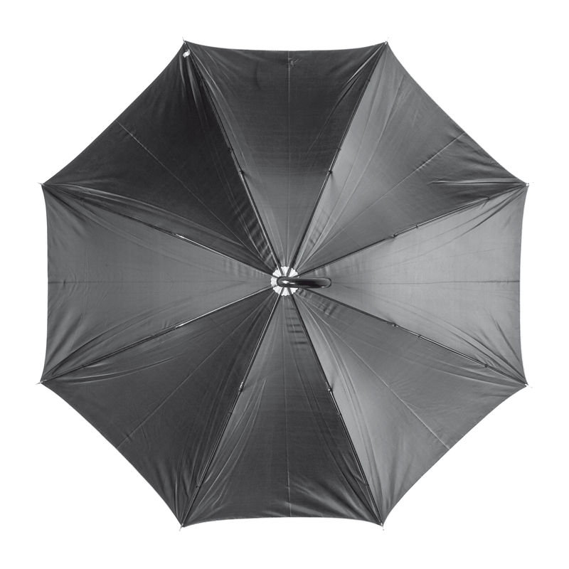 Luxurious umbrella with double cover, black exterior and coloured inside. High-quality manufactured results in a long lasting umbrella. We will print your logo on one segment. Full-colour print on request.
