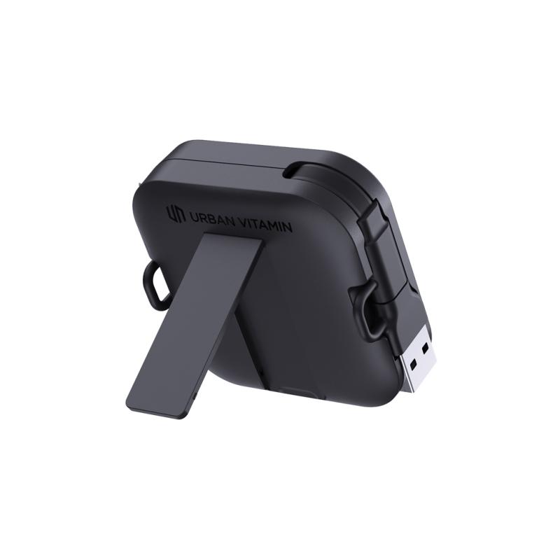 The ultimate all-in-one charging solution. San Jose is a 100W phone stand with an integrated retractable charging cable that delivers super-fast power and convenience. With its magnetic phone stand and kickstand, San Jose keeps your phone secure and propped up at the perfect angle for hands-free use — whether you're watching videos, video calling, or using CarPlay.The retractable RTPE cable extends up to 100cm and offers super-fast charging, supporting up to 100W power delivery with the USB-C to USB-C cable. It also comes with USB-A to USB-C and USB-A to iOS connectors, making it versatile enough to charge a wide range of devices. Plus, it supports data transfer for seamless file syncing while you charge. San Jose is made with RCS (Recycled Claim Standard) certified RABS & RTPE materials. Total recycled content 59% based on item weight. Urban Vitamin items are made without PVC and packed in plastic-reduced packaging.
