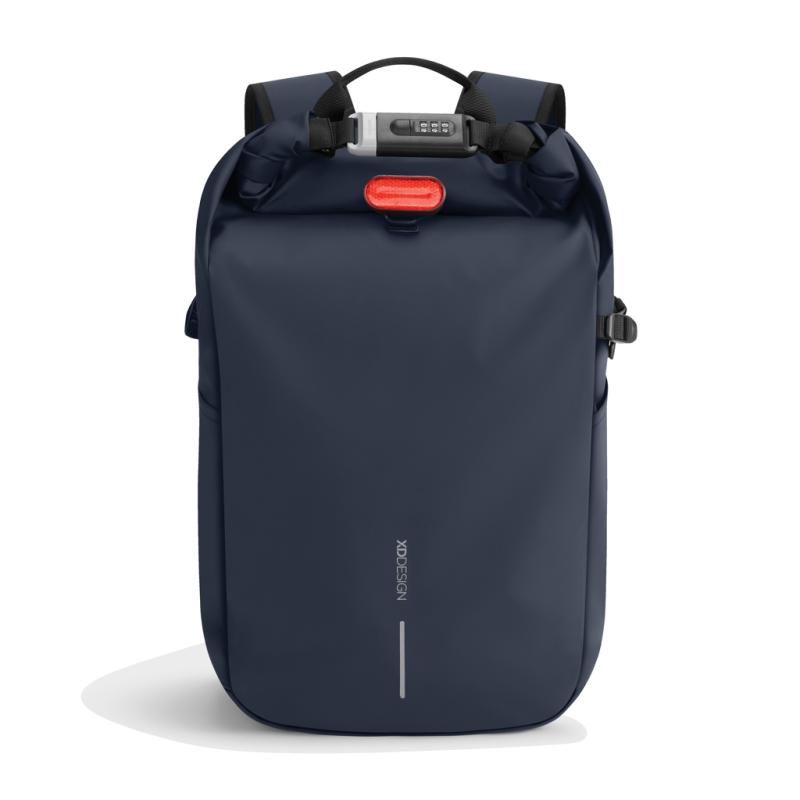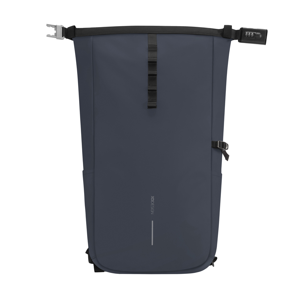 The new Urban anti-theft backpack stands as the ideal travel companion, ensuring security and convenience. By rolling up the main compartment and securing it with the reinforced combination lock, the backpack offers complete closure, which can also be used to lock the bag around a fixed object. Hidden pockets on the back. The bag is equipped with a side water bottle pocket. Internally, padded compartments cater to a 16” laptop and mesh pockets provide organisation for your essentials. Crafted with Aware™ traceable recycled polyester and finished with a soft touch water resistant PU coating. 11% recycled content. Registered design®