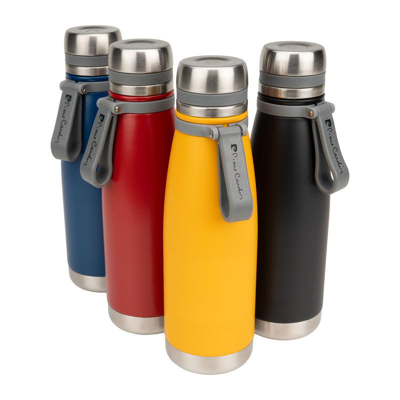 A 650 ml Pierre Cardin thermal bottle, made of food-grade stainless steel. The vacuum technology used maintains the temperature of hot drinks for up to 12 hours and cold drinks for up to 15 hours. The product is BPA-free and made of environmentally friendly materials. Intended for hand wash only. The bottle has a practical handle.