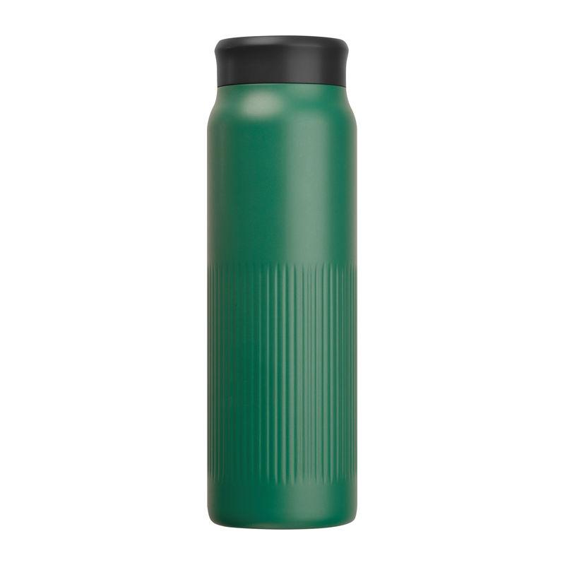 Double-walled vacuum stainless steel bottle made of recycled material with distinctive ribbed structure and 700 ml capacity.