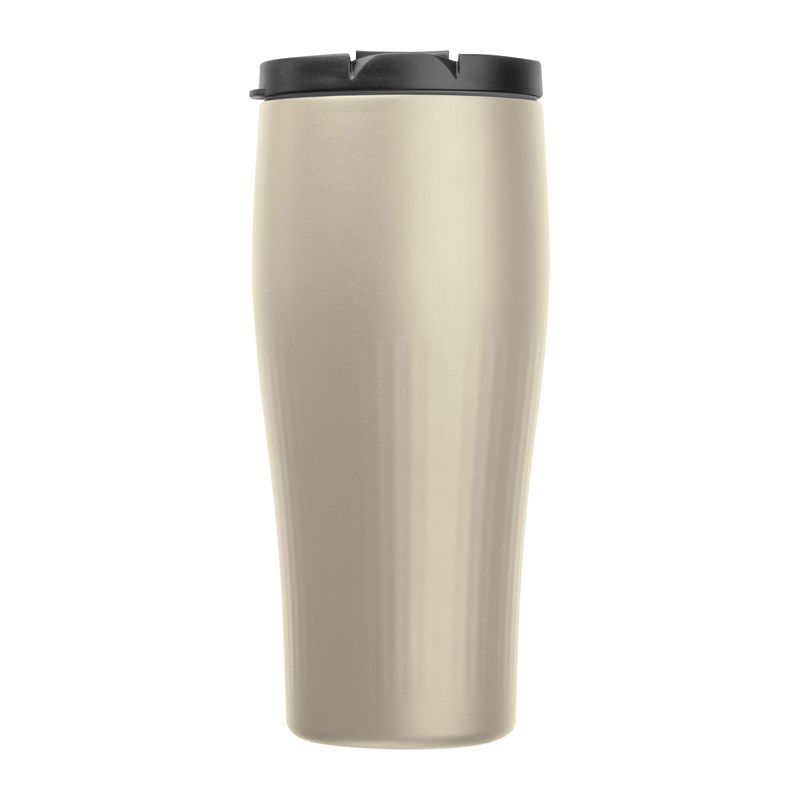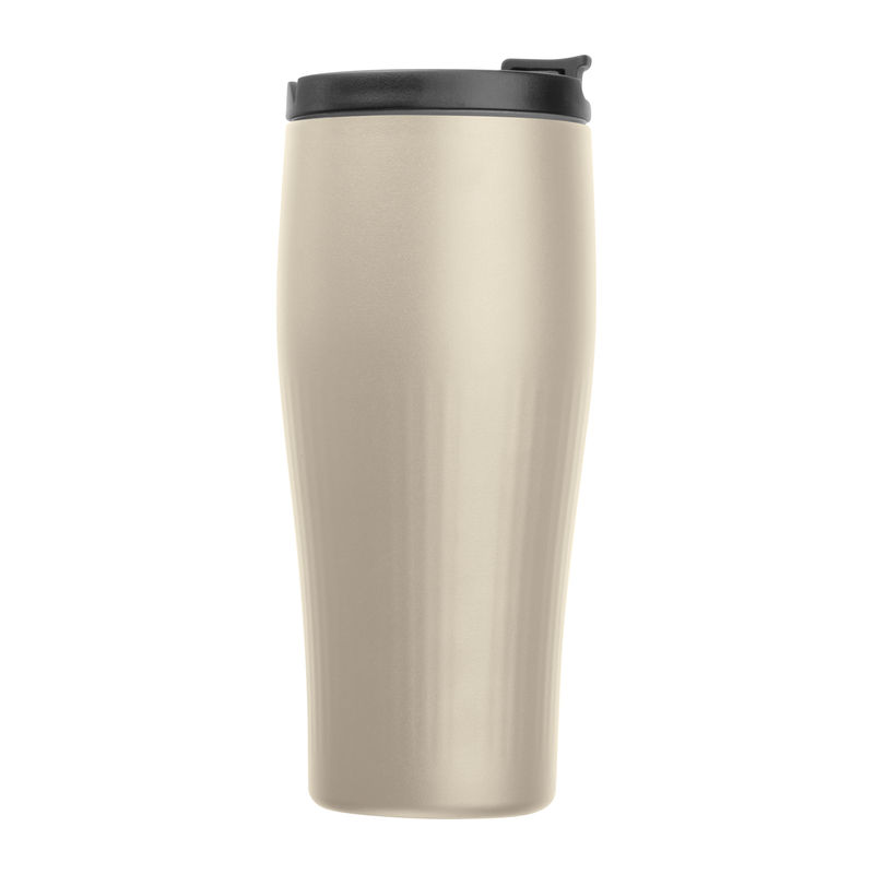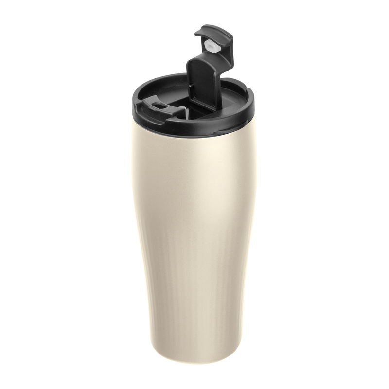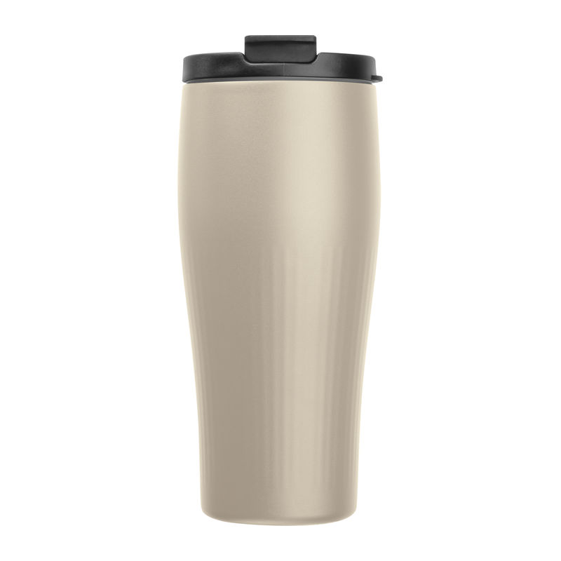 Double-walled vacuum stainless steel drinking cup with 500ml capacity and leak-proof lid.