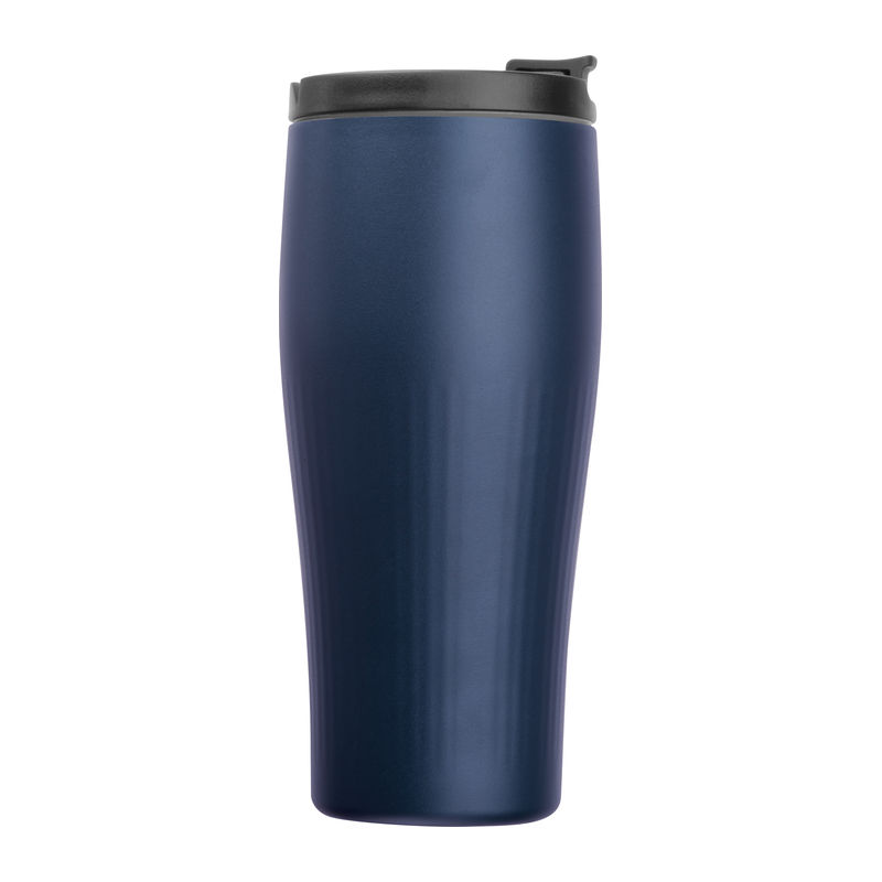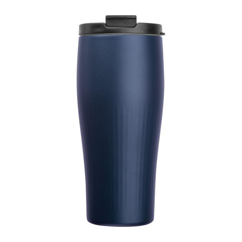 Double-walled vacuum stainless steel drinking cup with 500ml capacity and leak-proof lid.