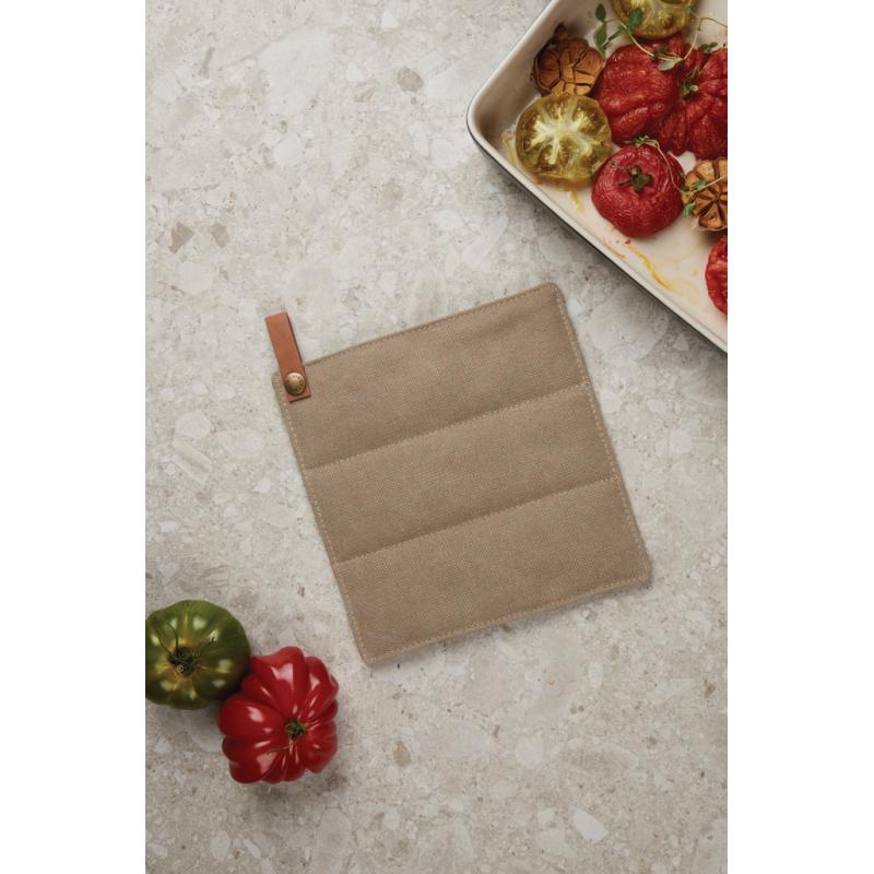 A durable and stylish potholder, made from high-quality stonewashed canvas fabric. Our potholder is designed with your comfort and safety in mind. The thick canvas material provides excellent heat protection, while the soft inner lining ensures a comfortable grip.