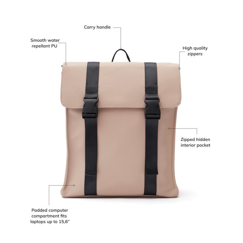 Minimalistic and clean backpack that suits all occasions. The backpack is made of PU-material and has adjustable straps for optimal comfort. The backpack is also equipped with a zipper pocket on one side and a hidden pocket on the back, so you can easily turn your back without worrying about your valuables. Works equally well as a work bag and as a school bag.Suitable for computers with an overall size of 17 inches. Please note that the dimensions of the display are not the same as the dimensions of the entire computer.