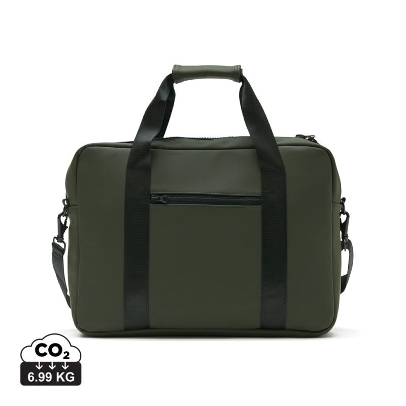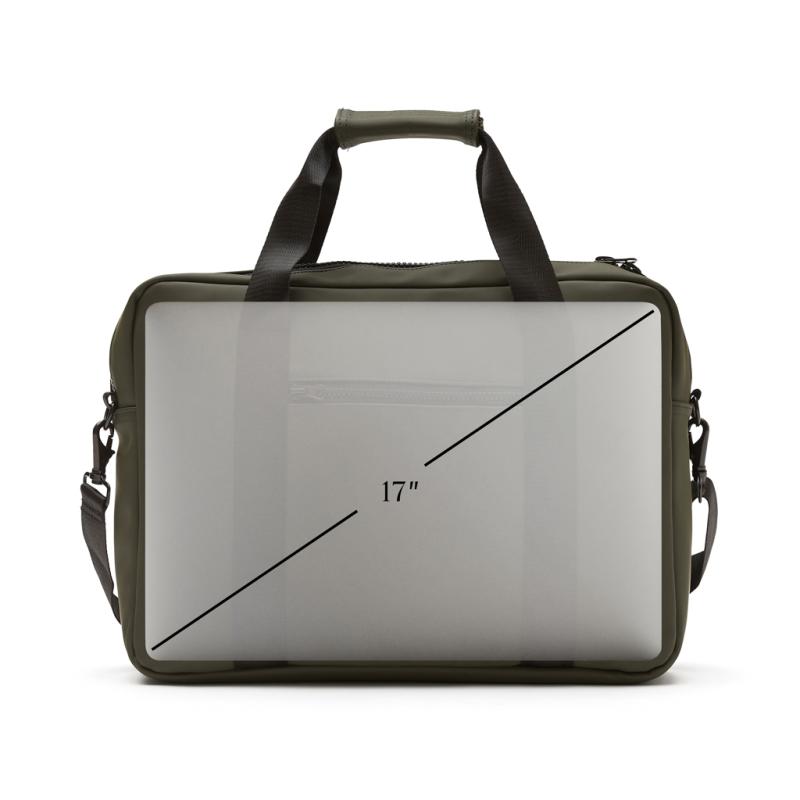 Modern and clean design computerbag. Functions and form comes together, besides the ordinary computer pocket this bag also has place for pens, documents and other belongings. The bag is produced in a water repellent material, with both shoulder strap and carry handles. It also includes an attached band on the backside, so it fits your trolley when travelling.Suitable for computers with an overall size of 17 inches. Please note that the dimensions of the display are not the same as the dimensions of the entire computer.