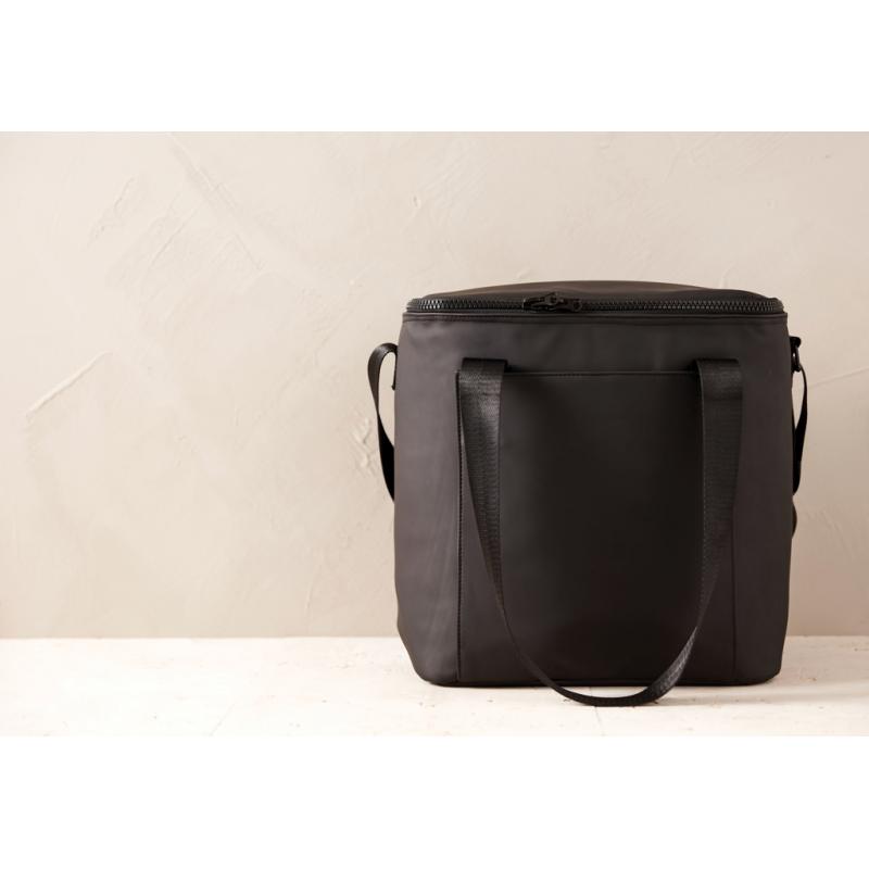 Minimalist cooler bag, made of water-repellent PU nubuck. Long handles and adjustable shoulder strap for optimal comfort. The cooler bag is insulated with extra thick foam. The lining of the bag is made of so-called PEVA which is easy to keep clean and fresh. A cooler bag perfect for both the beach and a wilderness adventure.