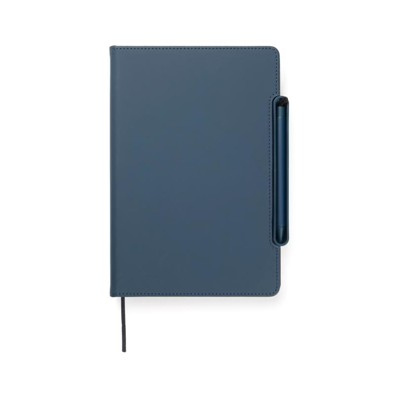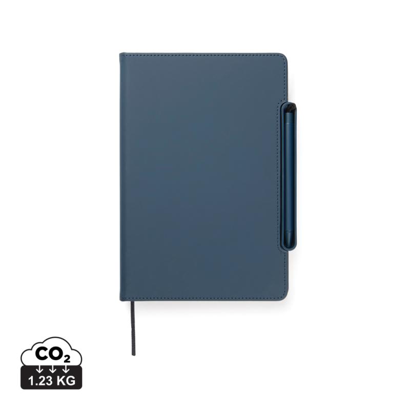 Meet the ultimate multifunctional notebook designed to support your daily workflow. This smart 4-in-1 solution combines practicality, flexibility and design in one. Crafted from RCS certified recycled paper with a cover in classic Baltimore matte PU coating making it as visually appealing as it is functional. A magnetic ruler serves as both a ruler and pen holder including a matching ballpoint pen with blue ink. The pen holder easy transforms into a phone stand integrated into the notebook’s structure. The interior features card holder flaps for convenient storage and an easily replaceable notebook insert for long-lasting use. The notebook contains 80 sheets / 160 lined pages, providing plenty of space for notes, planning, and ideas. It is the perfect companion for meetings, travel, or everyday organisation. Total recycled content: 70% based on total item weight. Certified by Control Union, CU1162221.