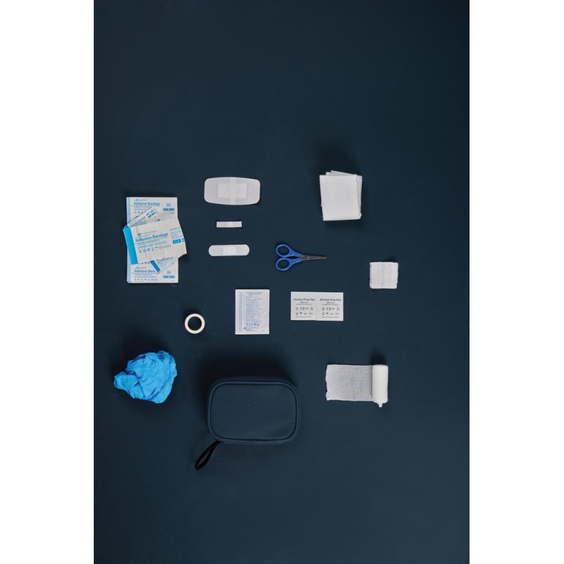First aid kit from the popular Baltimore series – designed for both everyday use and adventure. Its compact design with a carrying strap makes it easy to bring along, whether in your bag or in the car. Equipped with essential supplies such as plasters, scissors, bandages, gauze pads, compresses, wound wipes, tape, and disposable gloves. Everything you need to treat minor injuries quickly and safely. Features a durable SAB zipper. Certified by RCS (Recycled Claim Standard), RCS certification guarantees that the entire supply chain of recycled materials is certified. The total recycled content is based on the overall product weight. This product contains 23% RCS certified recycled polyester.