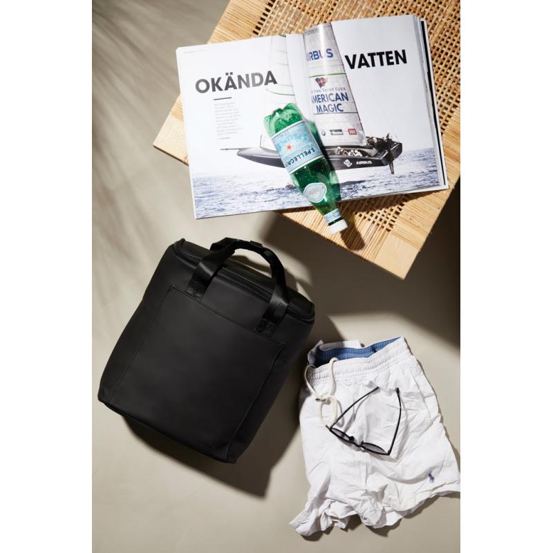 A minimalist cooler backpack made in water-repellent nubuck PU. This cooler backpack is insulated with extra thick foam and lined with so-called PEVA, a material that is easy to keep clean and fresh. A fantastic backpack for the beach, boat, or wilderness adventure.