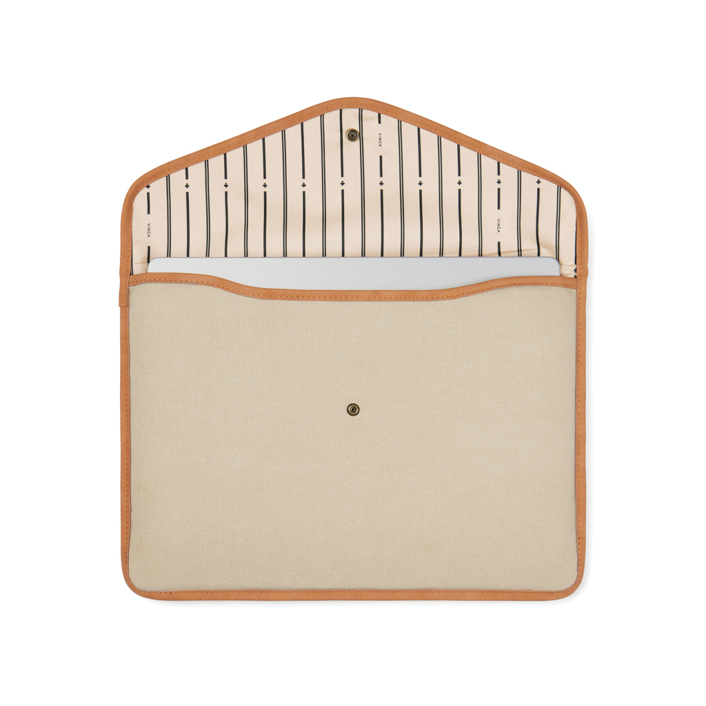 Keep your laptop safe with a classic and stylish sleeve from our Bosler series. Closed with a press button and padded for safe storage. Made of recycled canvas with details in PU. Please note: Display dimensions may vary from laptop dimensions. Certified by GRS (Global Recycled Standard), GRS certification guarantees that the entire supply chain of the recycled materials is certified. The total recycled content is based on the overall product weight.This product contains 38% GRS certified recycled cotton and 25% GRS recycled polyester.