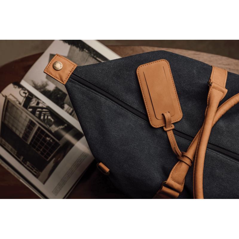 A luggage tag to mark your belongings, perfect for business trips and vacations. With its sleek design and convenient loop, it easily attaches to all types of luggage. The tag includes a discreet address label where you can fill in your name and contact details, making it easy to identify your luggage with both style and security. Certified by RCS (Recycled Claim Standard), RCS certification guarantees that the entire supply chain of recycled materials is certified. The total recycled content is based on the overall product weight. This product contains 30% RCS certified recycled polyester and 13% RCS certified recycled PU.