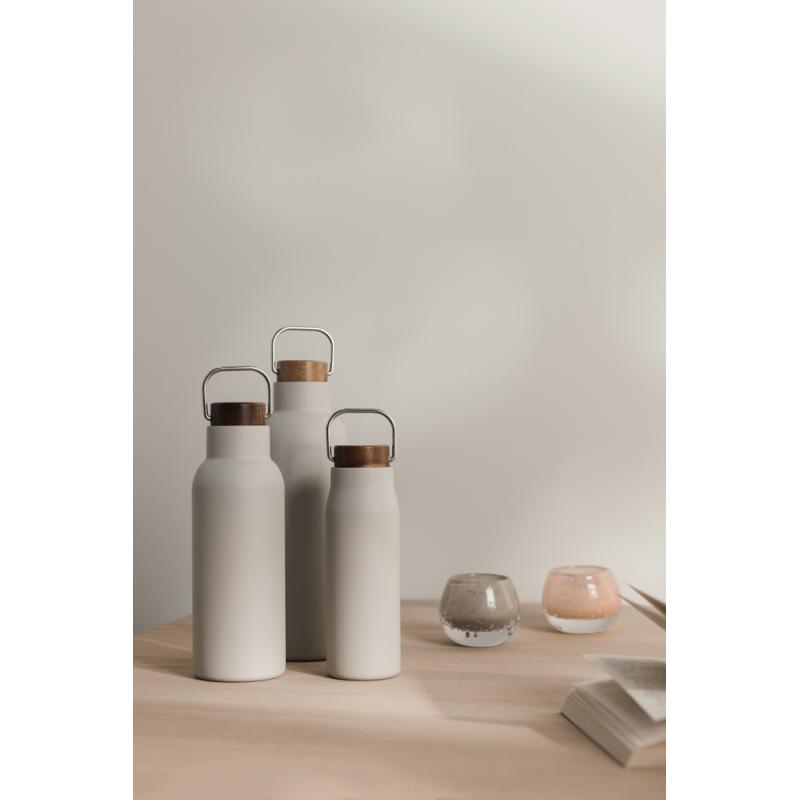 Ciro RCS recycled vacuum bottle is an elegant and functionally designed thermos bottle. The bottle has a lid of acacia wood with a metal loop, which makes the bottle easy to carry with you when you're on the go. Acacia wood is an organic material where variations in shade and color are natural characteristics. The vacuum construction with double walls in recycled stainless steel ensures that the bottle keeps the temperature intact for a long time, both hot and cold drinks. Certified by RCS (Recycled Claim Standard), RCS certification guarantees that the entire supply chain of the recycled materials is certified. The total recycled content is based on the overall product weight. This product contains 69% RCS-certified recycled stainless steel. The bottle is easy to clean and should only be cleaned by hand. Including FSC®-certified kraft packaging.