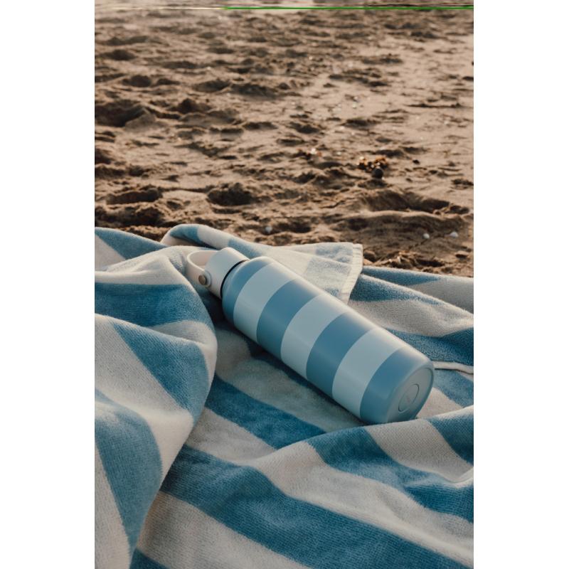 This beach towel is the ideal companion for sunny days at the beach, on the boat or by the pool. Woven in a classic two-coloured striped pattern and made from GRS certified recycled cotton, it offers a very soft handfeel and lasting comfort. With its heavy 450 GSM weight, the towel combines excellent absorbency with a premium quality. Size 80x160cm. Responsibly made in Portugal. Certified by GRS (Global Recycled Standard), GRS certification guarantees that the entire supply chain of the recycled materials is certified. The total recycled content is based on the overall product weight. This product contains 50% GRS certified recycled cotton.