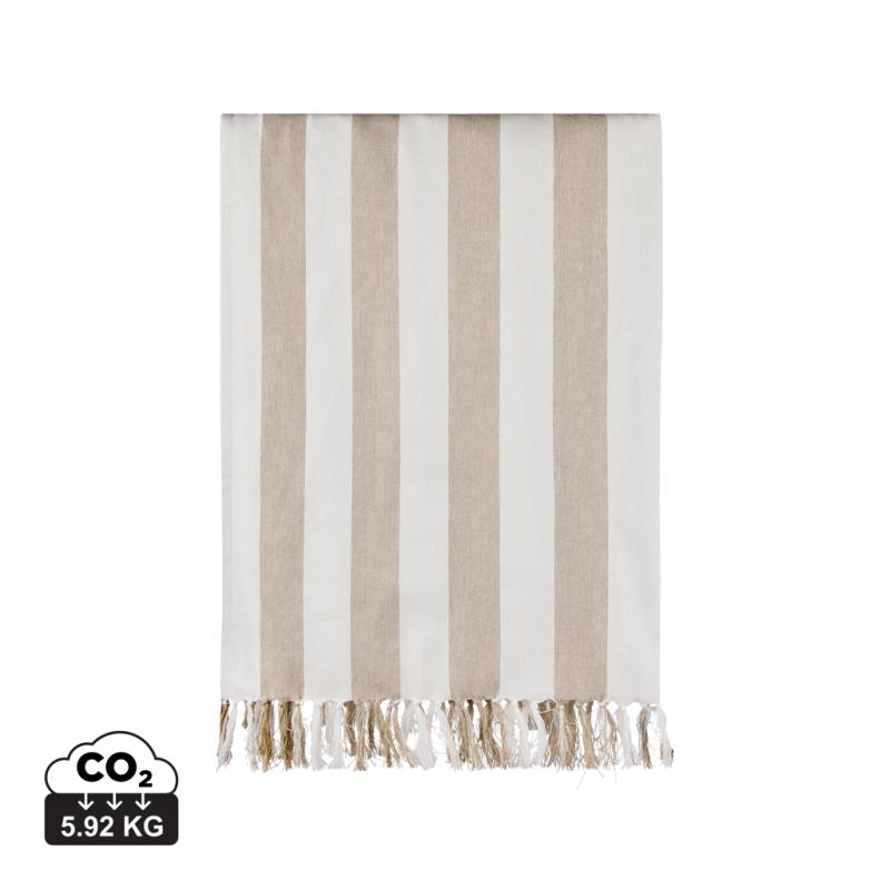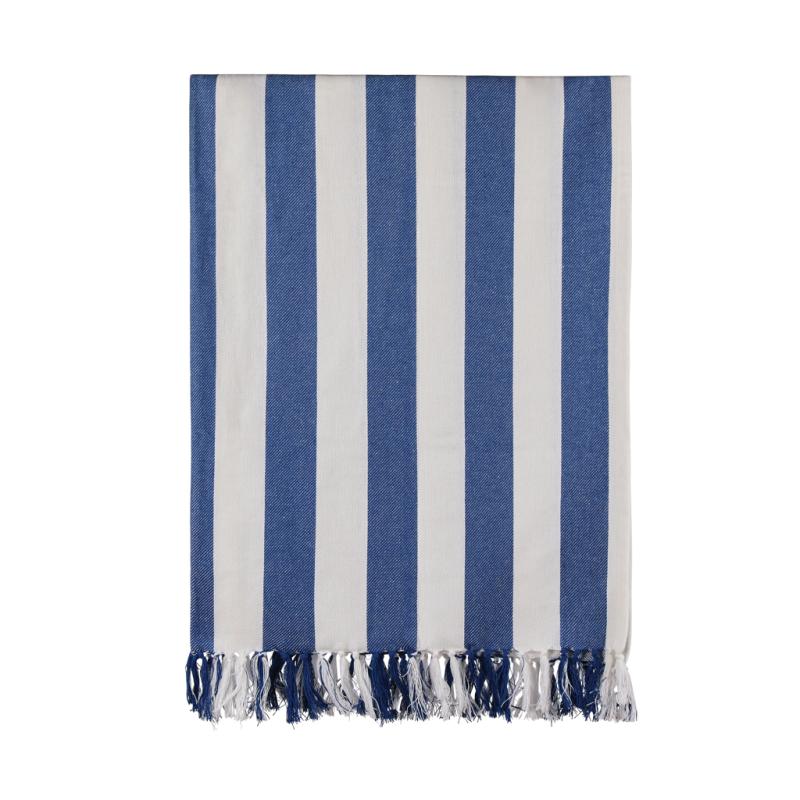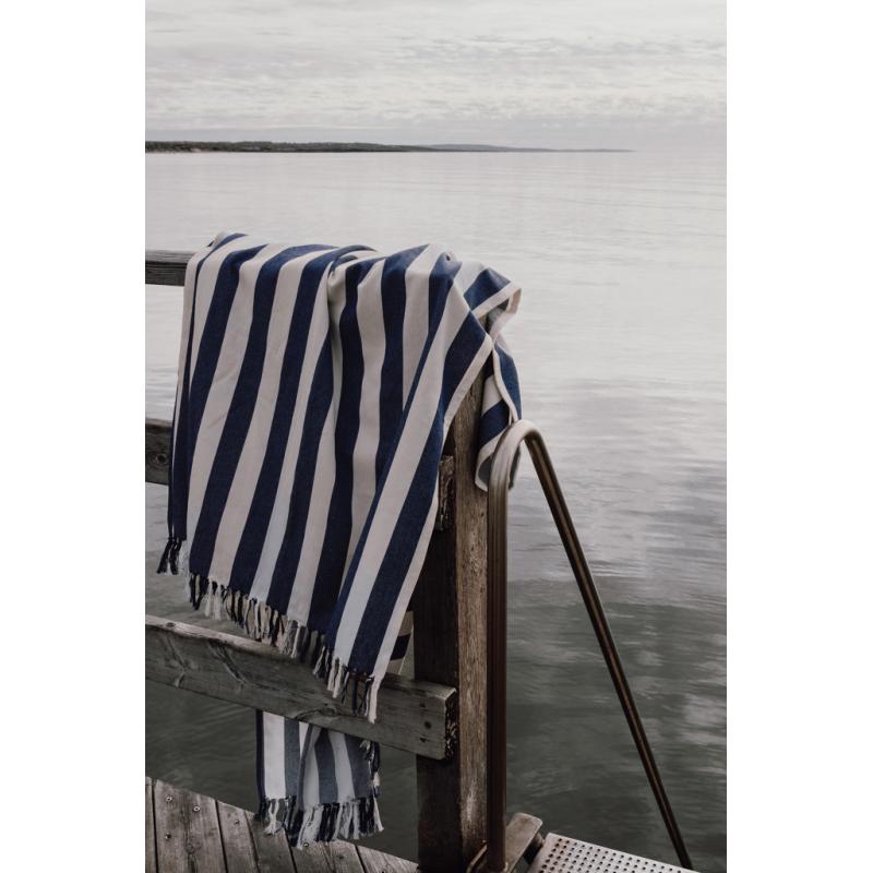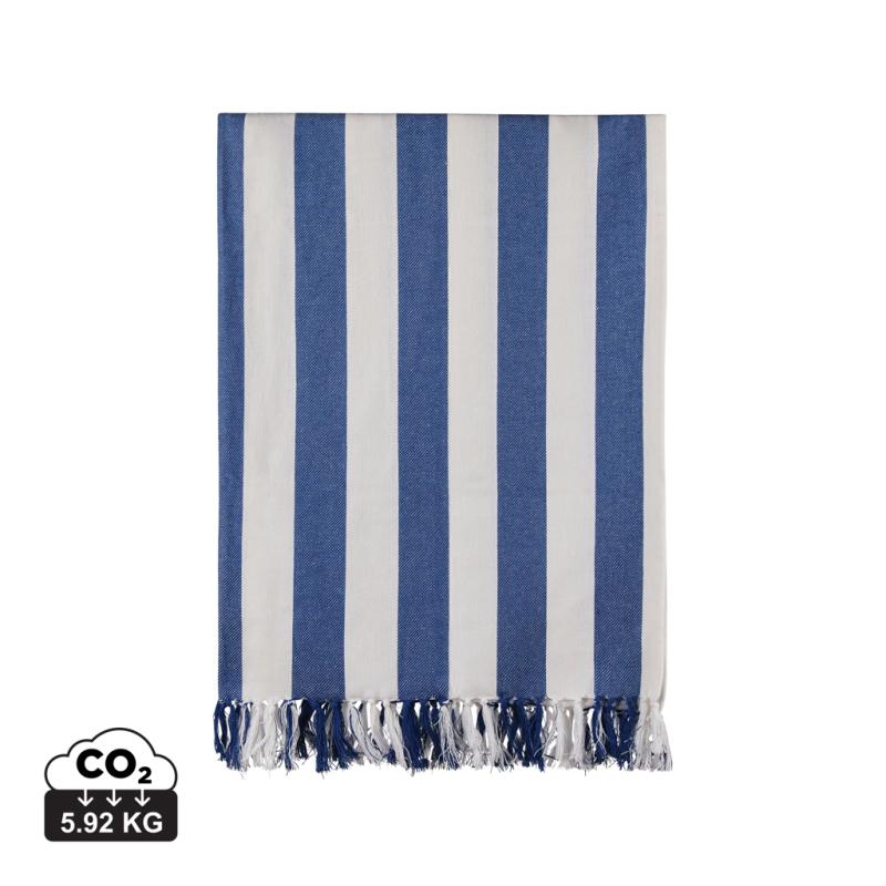 This family hammam beach towel features a classic two-colored striped pattern with fringes on the short sides. With its generous 180×180 cm, it’s perfect for sharing with loved ones, whether you’re relaxing at the beach or lounging by the pool. Crafted from a lightweight and airy 200 gsm blend, it combines the comfort of cotton with the quick-drying benefits of polyester. Certified by GRS (Global Recycled Standard), GRS certification guarantees that the entire supply chain of the recycled materials is certified. The total recycled content is based on the overall product weight. This product contains 70% GRS certified recycled cotton and 29% GRS certified recycled polyester.