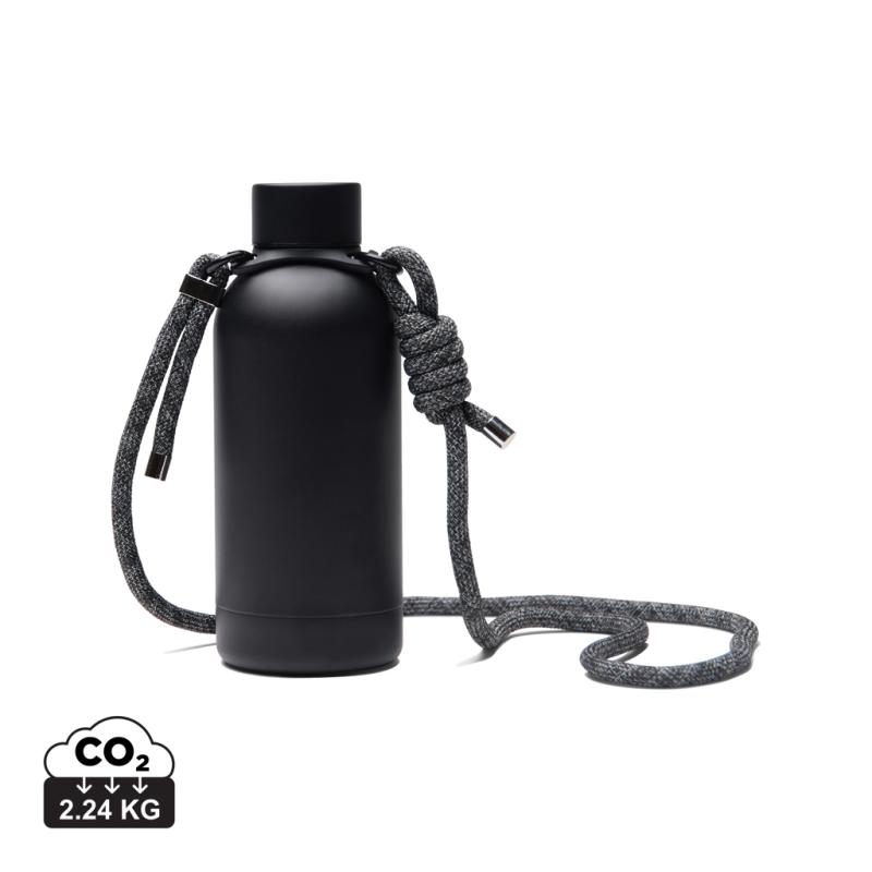 Ready for every trail, this stainless steel bottle is built for an active lifestyle. This double walled bottle is designed to keep drinks refreshingly cold for up to 12 hours and warm for up to 6 hours. It comes with a practical removable and adjustable shoulder strap that makes carrying effortless whether you’re in city on the go, hiking uphill, or heading out for a day of adventure. Not dishwasher or microwave safe, only handwash. Capacity 400 ML. Certified by RCS (Recycled Claim Standard), RCS certification guarantees that the entire supply chain of recycled materials is certified. The total recycled content is based on the overall product weight. This product contains 72% RCS certified recycled stainless steel.