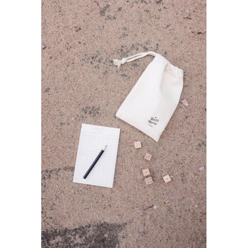 A timeless game that’s perfect for leisurely days in the garden, at the beach, or during summer picnics – and why not during your lunch break at work? The goal is simple: score as many points as possible by throwing and combining dice in various ways. The game includes five standard-sized dice crafted from FSC® certified pine wood as well as a notepad and pen to keep score. Everything comes in a practical cotton bag, making it easy to take with you anywhere. An instruction manual is included..