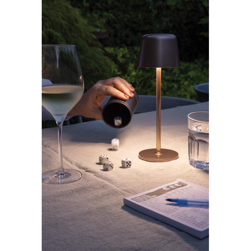 Trendy re-chargeable and portable table lamp that will look good both on your desk or in your living room. Made with RCS certified recycled ABS and metal pole. Total recycled content: 51% based on total item weight. RCS certification ensures a completely certified supply chain of the recycled materials. The table lamp will operate up 8 hours on one single charge and can be re-charged in 3 hours. With integrated 1200 mah A-grade battery, With three modes (warm light, white light and neutral) that can be adjusted by touching the top of the lamp. Rechargeable via USB-C including 80cm recycled TPE charging cable. Packed in FSC® mix packaging. PVC free.